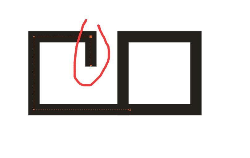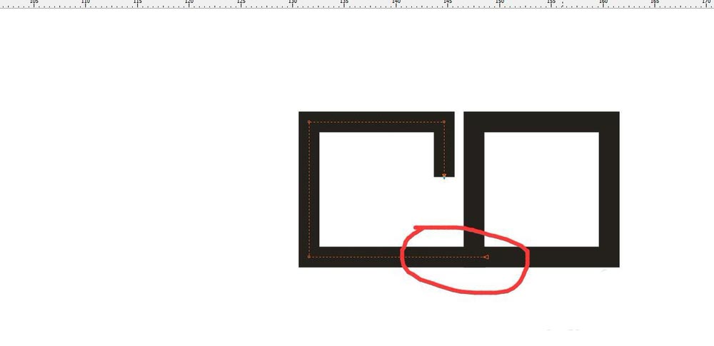 5、對(duì)節(jié)點(diǎn)進(jìn)行移動(dòng)。選中我們刪除了線段的這一段,這一段有兩個(gè)節(jié)點(diǎn),我們用形狀工具框選,然后向左側(cè)移動(dòng)一點(diǎn)