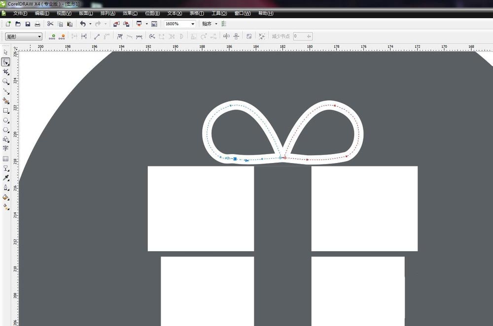 最上邊繪制的圖形其實是禮物盒的絲帶,我們可以利用形狀工具調(diào)節(jié)它的節(jié)點,讓線條更加平滑,美觀。調(diào)節(jié)完一個,復(fù)制過去另一個,讓兩側(cè)保持一致