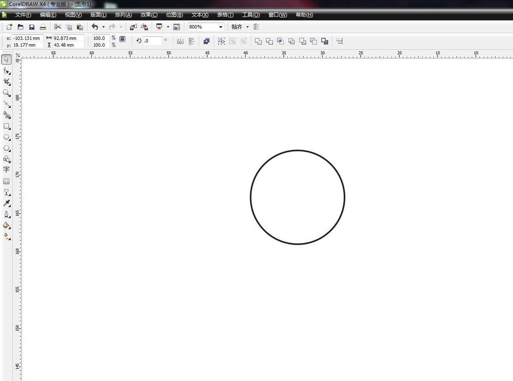 啟動CorelDRAW軟件,新建文件,在工具欄中選擇橢圓形工具,在工作區繪制圓形。按住CTRL鍵即可繪制一個正圓形