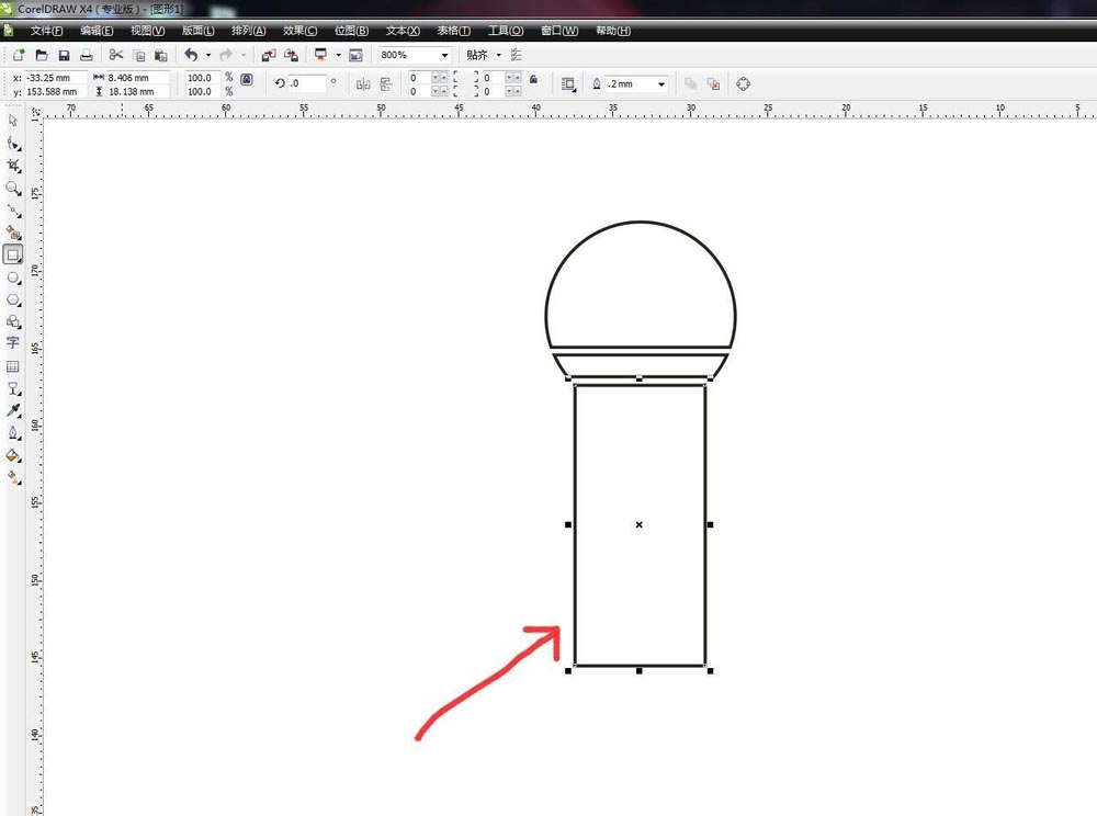 在下方我們繪制一個矩形,作為話筒的身體部分,因為是細長的,所以要畫的長一點,然后寬度要比上半部分窄一點點
