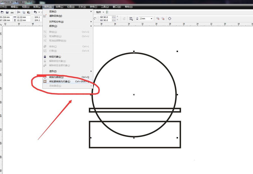 轉化為對象。選擇第一個小矩形,加選圓形,在屬性欄中選擇修剪命令。然后選擇下方的矩形,加選圓形,再次執行修剪命令,得到話筒的上半部分