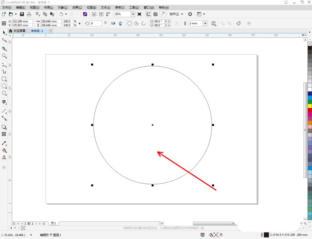 2、點(diǎn)擊【橢圓形工具】,在作圖區(qū)域繪制一個圓形圖案;