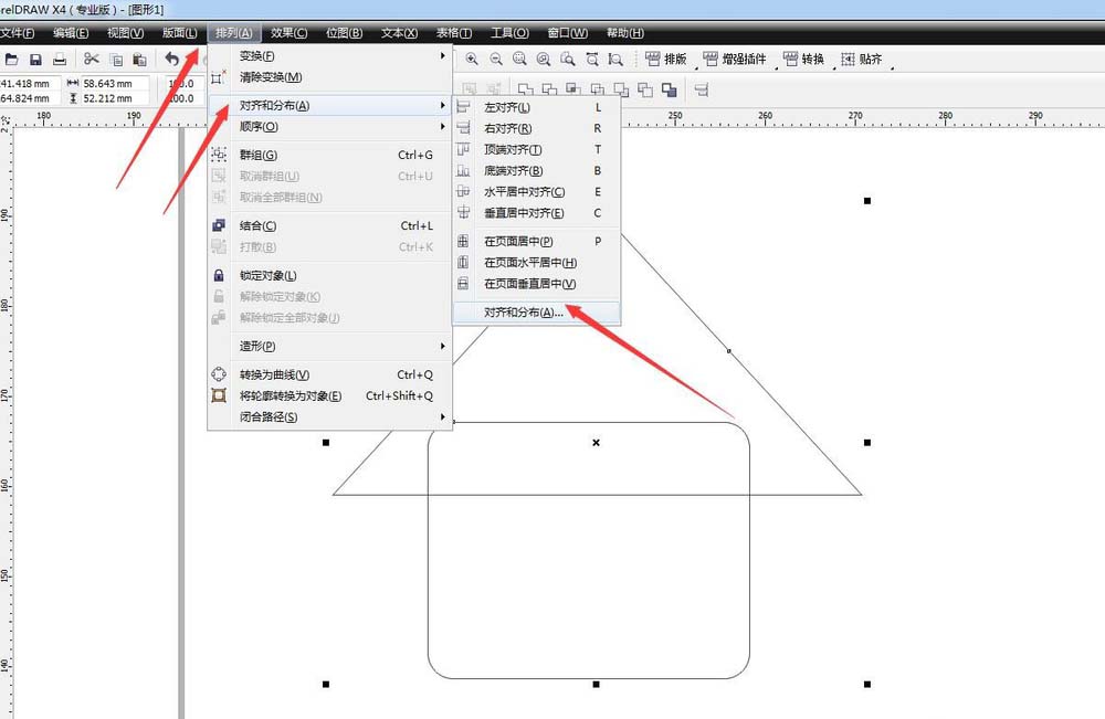 3、將圓角矩形和三角形執(zhí)行垂直居中對(duì)齊