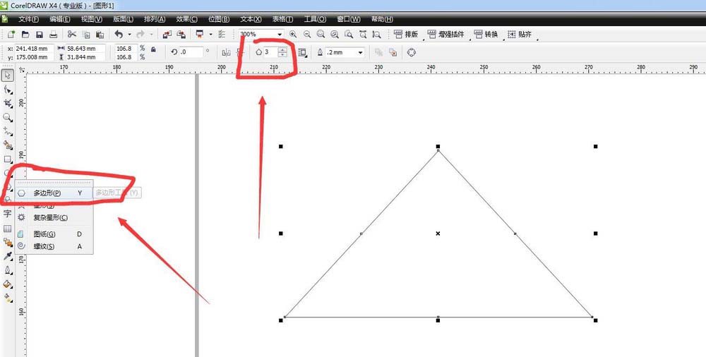 2、選擇三角形工具繪制一個(gè)三角圖形