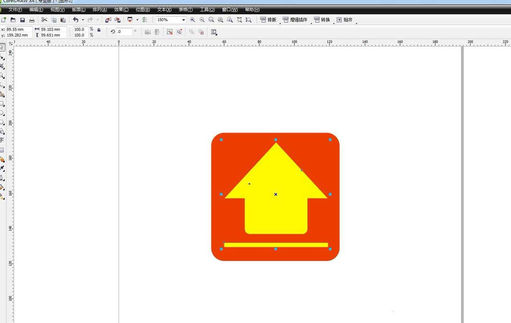然后將形狀全部群組為一個(gè)群組,填充為黃色,然后調(diào)整到適合的大小,放置到矩形中,這樣圖標(biāo)就做好了,可以在下方輸入文字