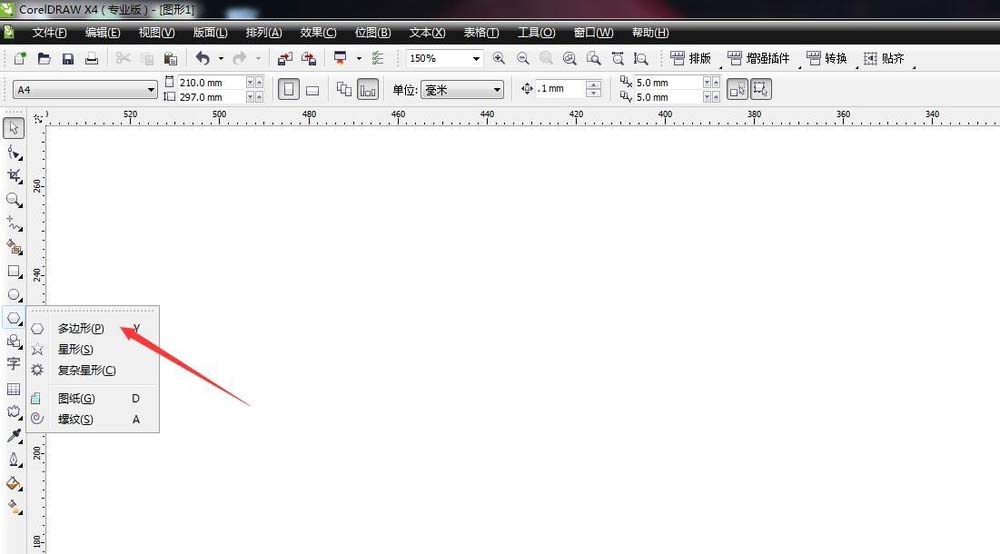 啟動CorelDRAW軟件,新建文件,然后在工具欄中選擇多邊形工具,直接拖拽盡可以繪制一個多邊形