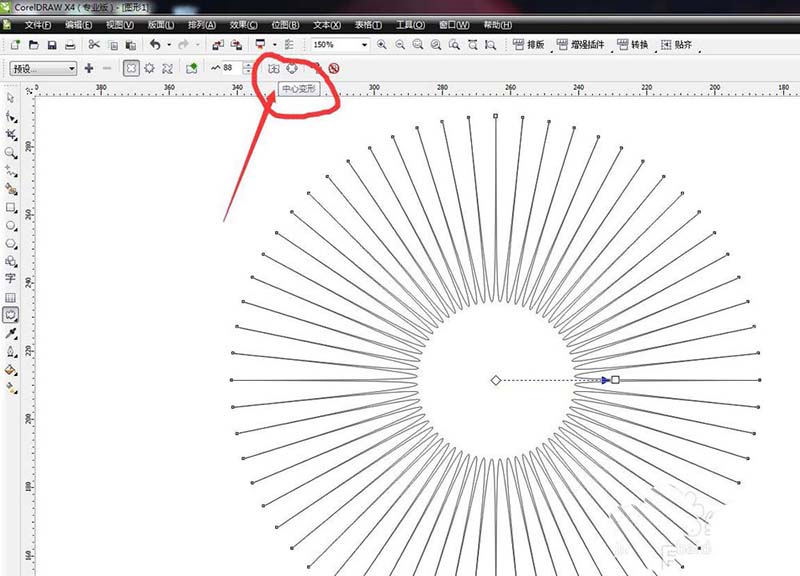 我們直接拖拉出來的變形肯定是不標準的,在屬性欄中直接選擇中心變形,那么就是從四周變形都是均勻的了