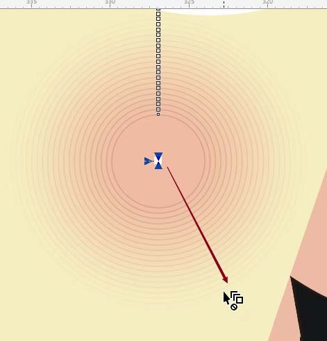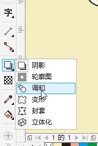 4、點擊調和工具,選中小圓,向外拖拉到大圓;間距調整為30,數值越大,邊緣越柔和。