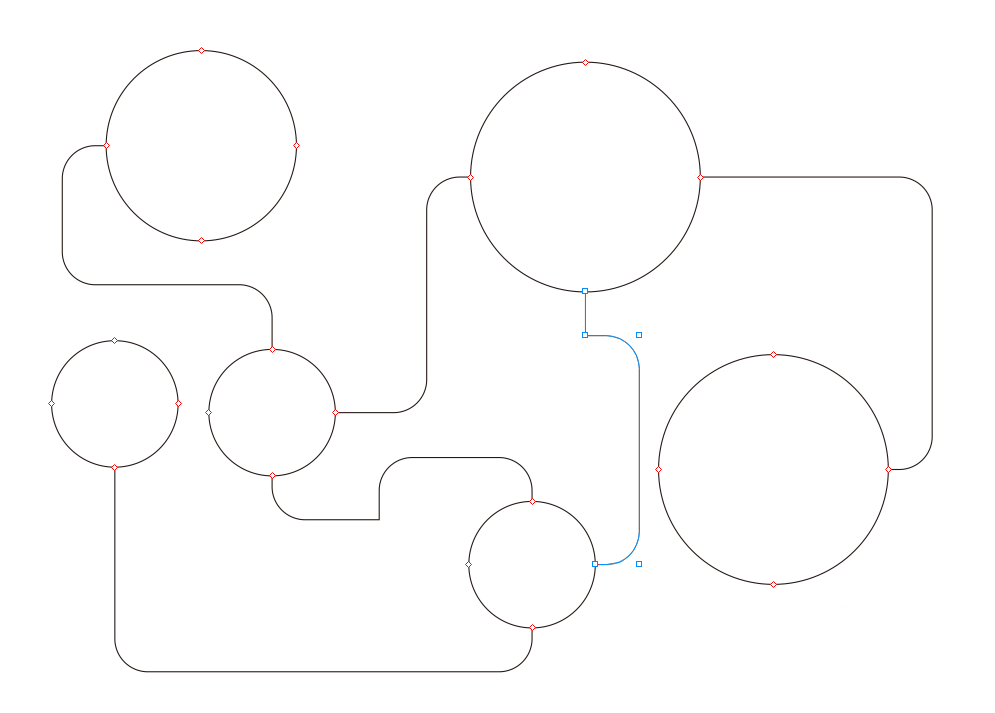 4、在2個對象之間,可以畫出任意連接線,連接線會根據實際情況自動生成圓角形狀。