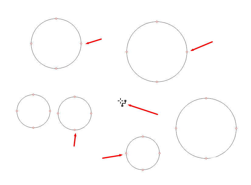 2、在工具箱中選擇圓直角工具后可以看到,鼠標變成圓直角樣式,頁面的所有對象顯示出節點位置。
