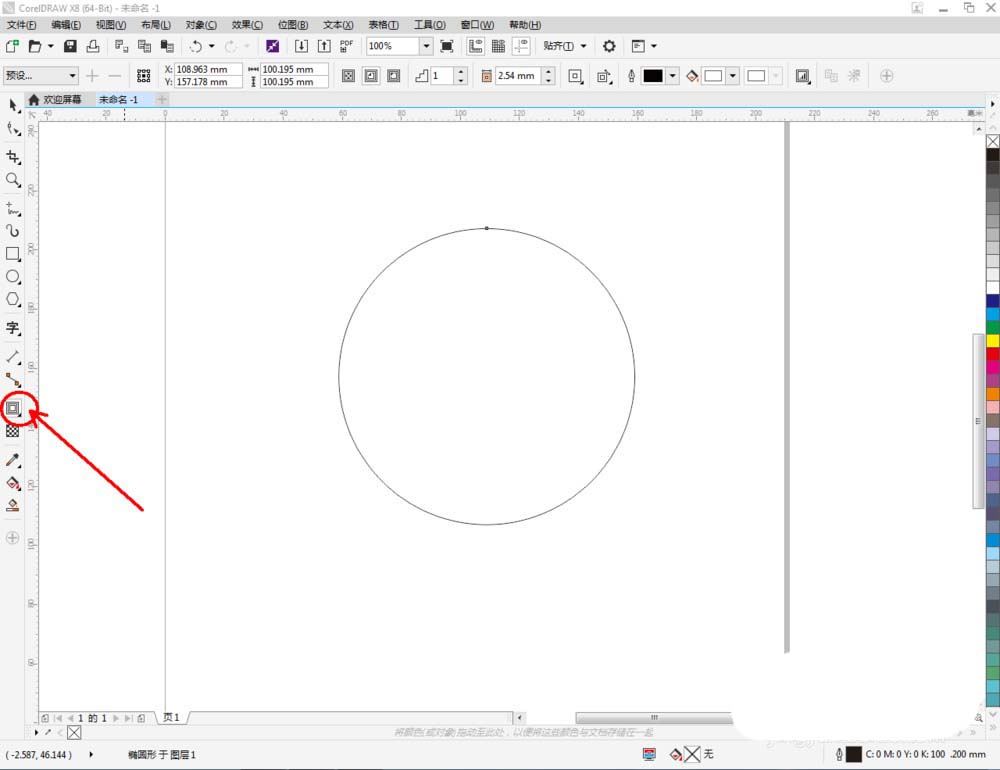 2、點擊【橢圓形工具】在作圖區(qū)域繪制一個圓形圖案。點擊【輪廓圖】拉動圓形圖案進行輪廓處理后,點擊鼠標右鍵-【拆分輪廓圖群組】將圖案拆分(如圖所示);