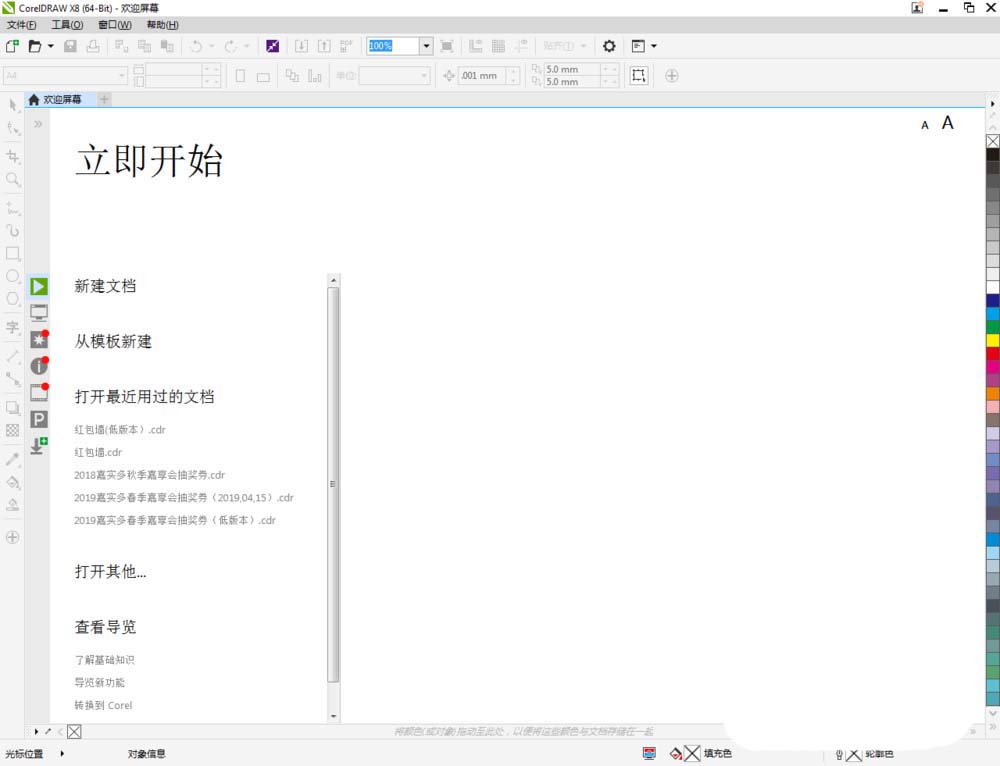 1、打開CorelDRAW X8 軟件,點擊【新建文檔】,按圖示參數新建一個cdr文檔(如圖所示);
