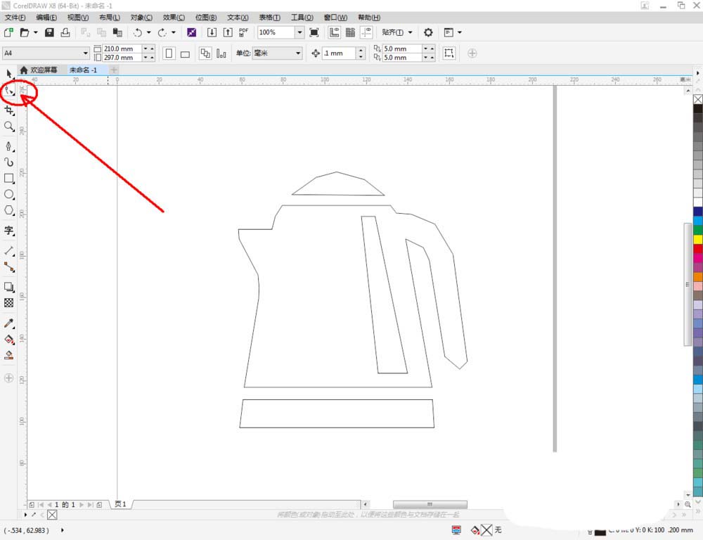 2、點擊【鋼筆工具】,按圖示在作圖區域繪制幾個多邊圖案組成電熱水壺的大致輪廓(如圖所示);