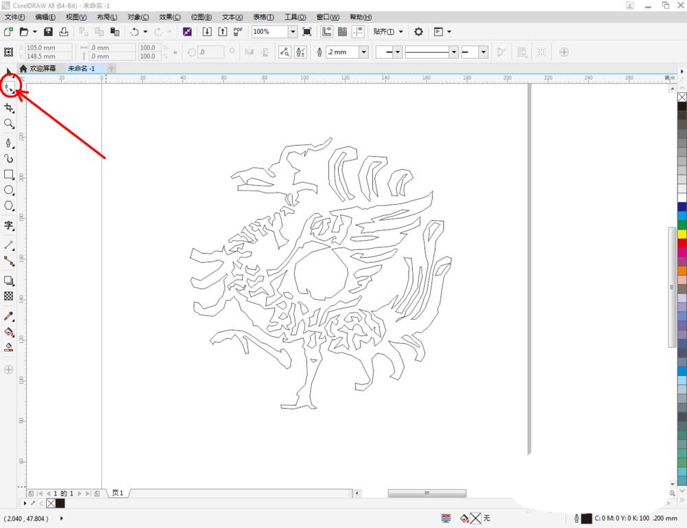 2、點擊【鋼筆工具】,在作圖區域繪制出朱雀的大致輪廓的多邊圖案。主體多邊圖案繪制完成后,繼續對細節部分圖案進行繪制(如圖所示);