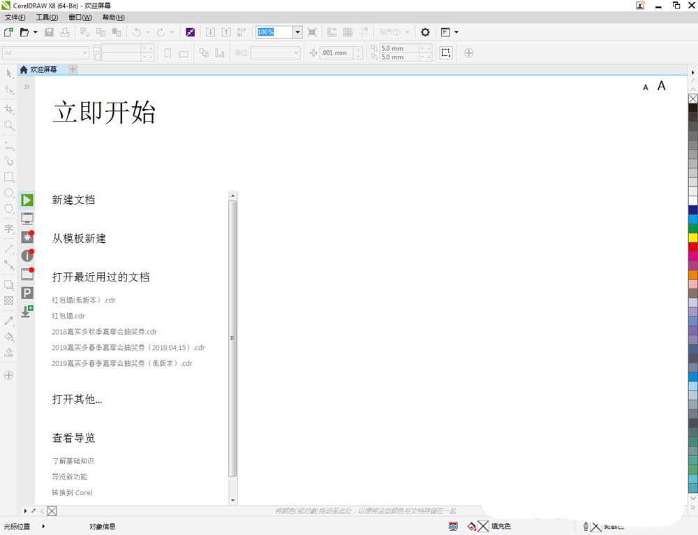 1、打開CorelDRAW X8 軟件,點擊【新建文檔】,按圖示參數新建一個cdr文檔(如圖所示);