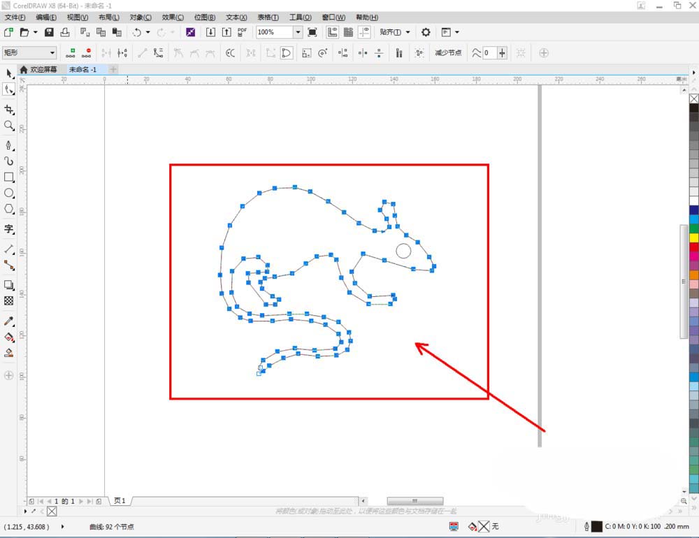 3、選中多邊圖案,點擊【形狀工具】,選中圖案上的所有點,點擊【轉換為曲線】將圖案轉曲后,按圖示調整控制點,完成整個生肖鼠輪廓圖案的繪制(如圖所示);