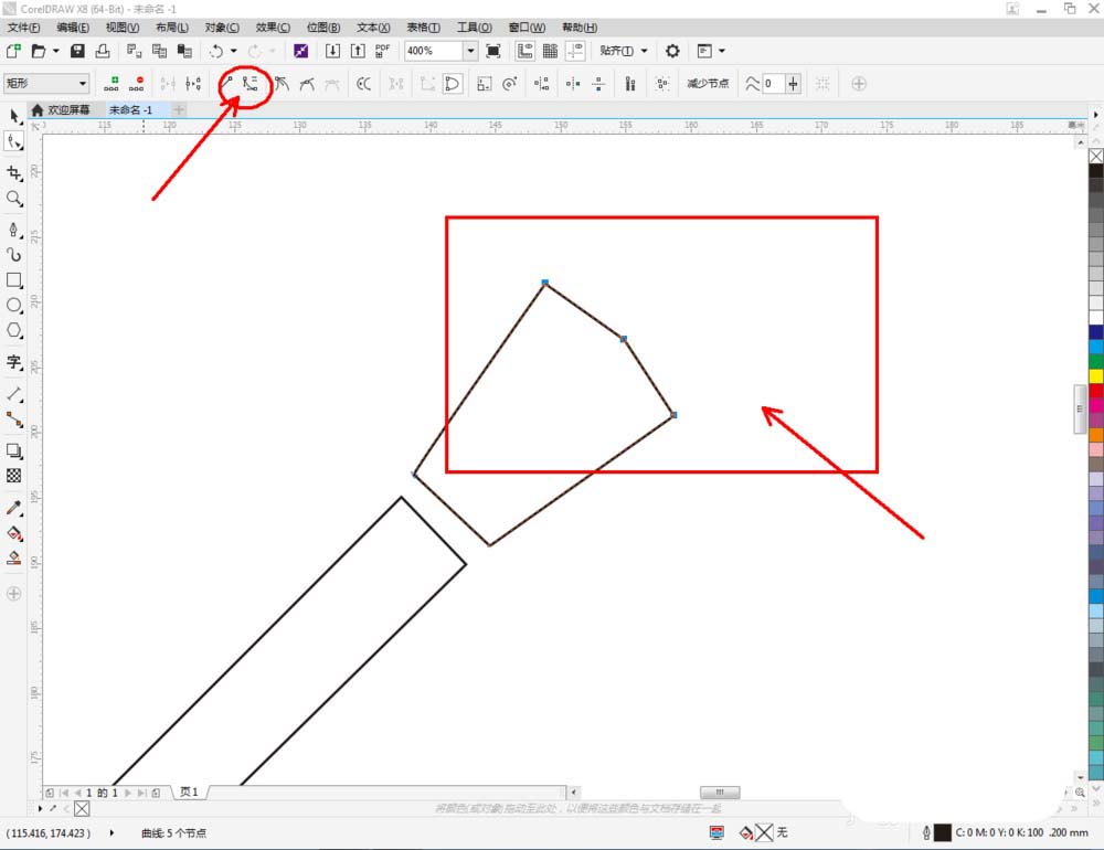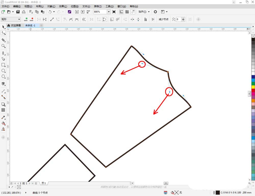 3、點擊【形狀工具】,選中圖示多變圖案上的點,點擊上方【轉換為曲線】后,對控制點進行移動調整(如圖所示);
