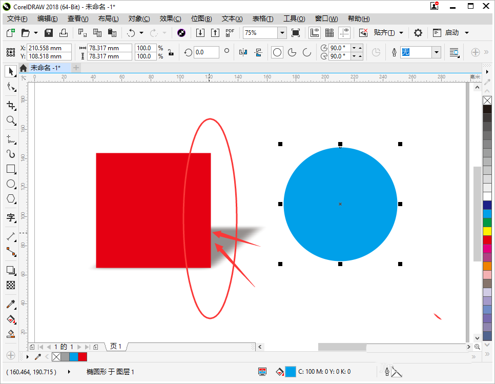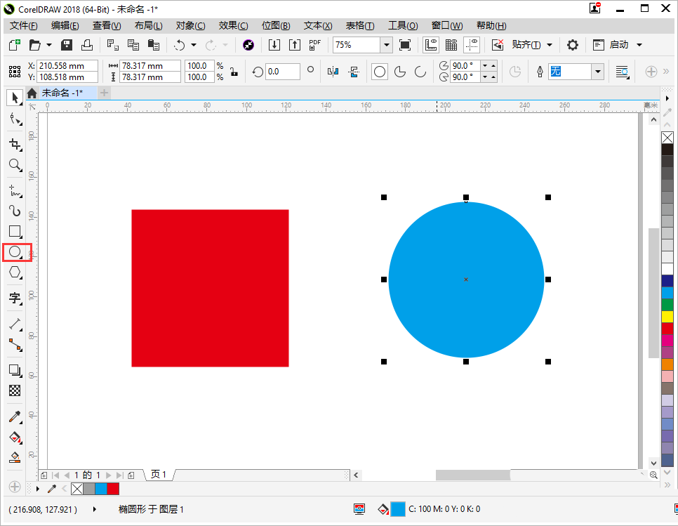 3、按照剛才的方法再畫一個(gè)藍(lán)色圓形