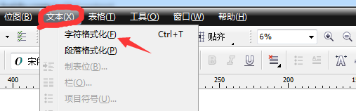 3、在文本選中狀態下,菜單欄中選擇文本—字符格式化,彈出對話框。