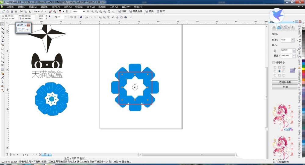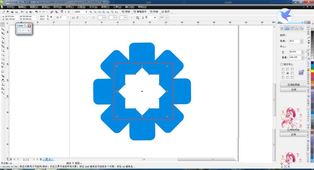 3、畫兩個正方形填充白色,一個旋轉45度,焊接命令得到中間圖形