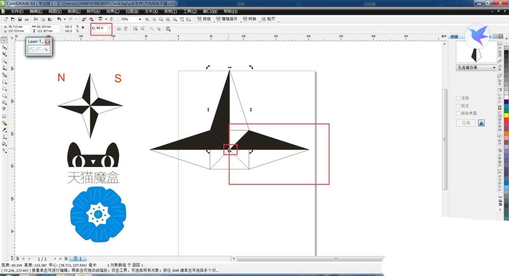 5、再復制一個,旋轉90度,第四個也一樣復制一個旋轉270,刪除輔助正方形