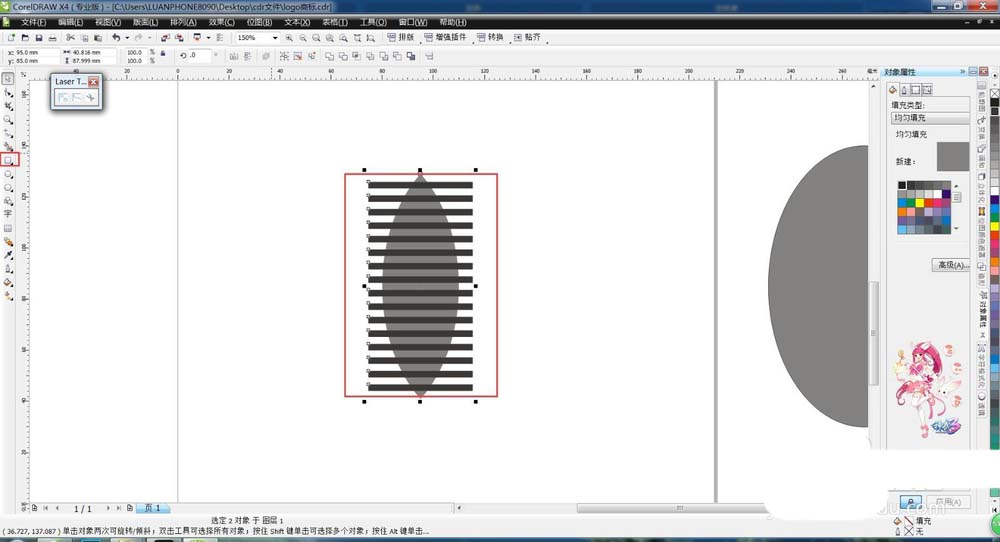 3、選中兩個橢圓做相交運算,刪去多余圖形,得到想要的形狀