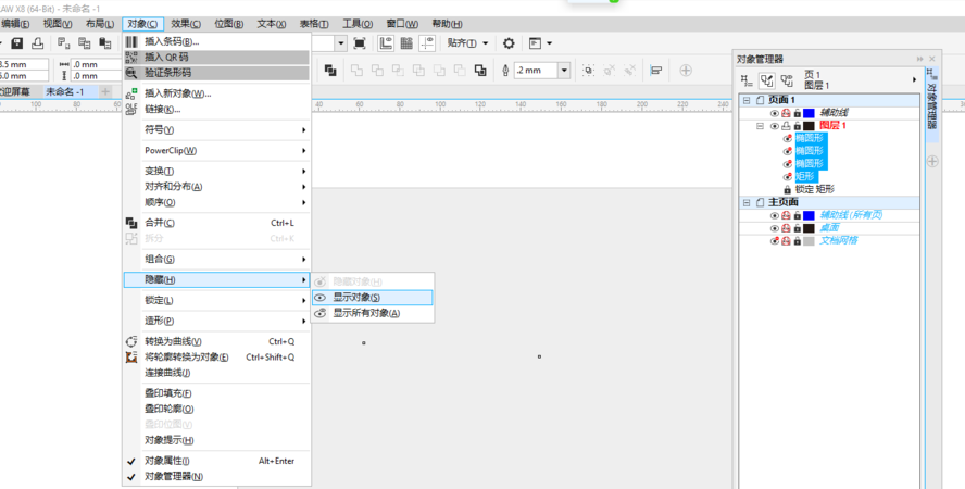 3、在隱藏狀態無法選擇無法編輯,可以在對象菜單顯示全部對象