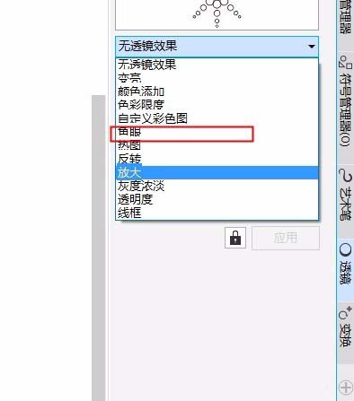 4、在透視泊塢窗上選擇魚眼(無透鏡效果就是刪除魚眼效果)