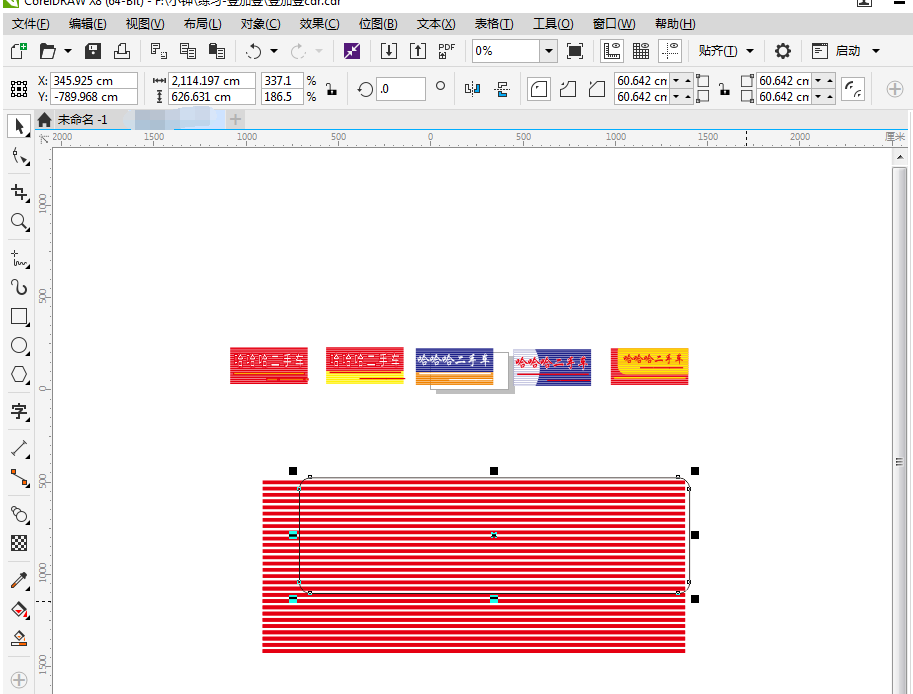 用矩形工具畫出矩形,去除邊框,填充紅色;將長條矩形復制一個,平移拉出到合適的高度;點擊左側工具欄中的“調和”工具,點擊第一個長條矩形,點住不放手,拖至第二個長調矩形處;在“調和對象”中,調整矩形之間的間距,調整至合適間距即可。
