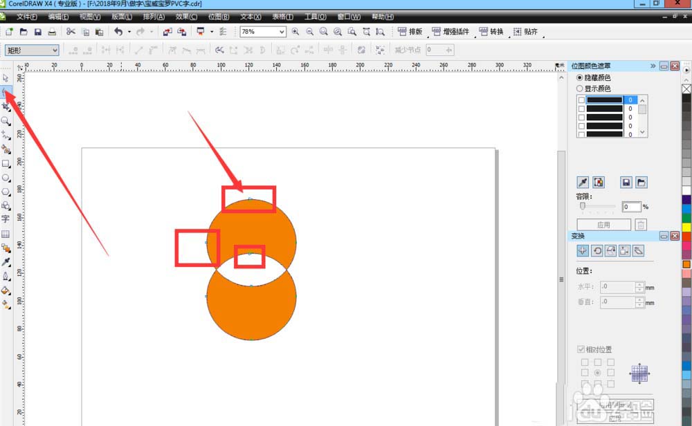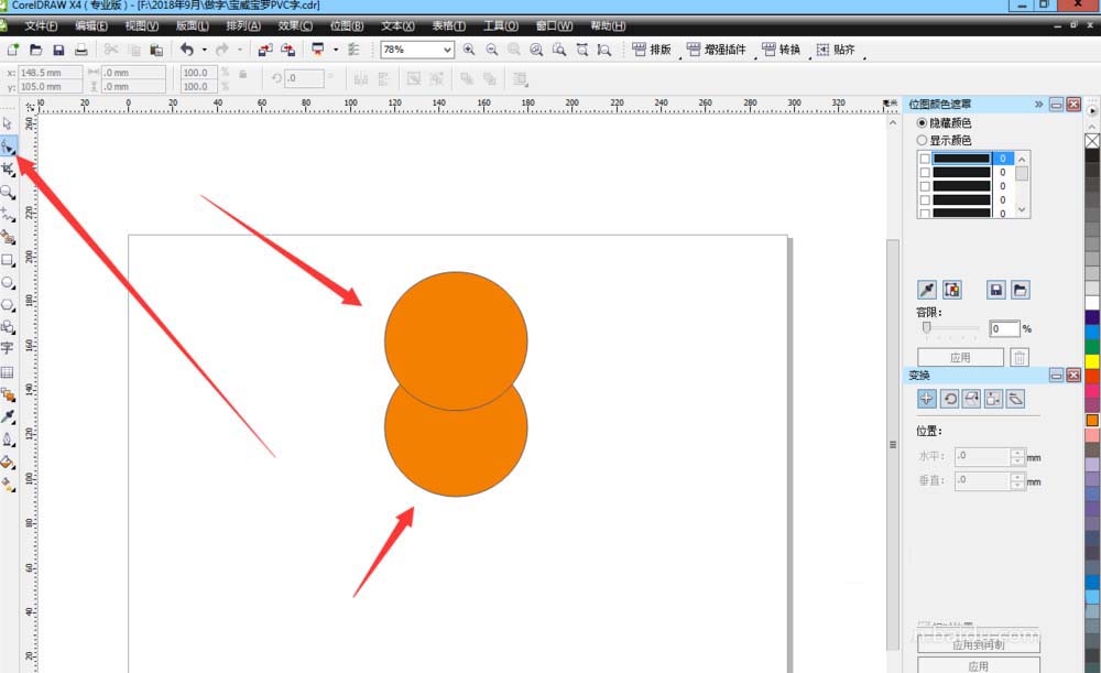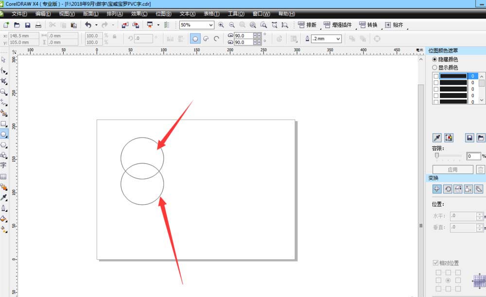 單擊橢圓工具繪制兩個圓作為實例操作。