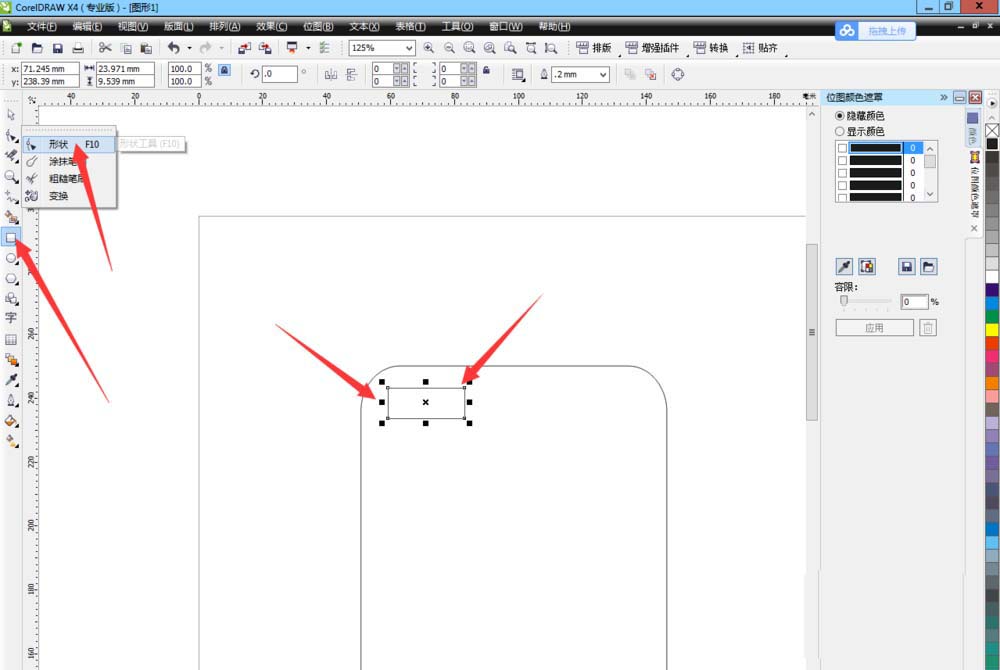 2、單擊矩形工具繪制一個矩形,并單擊形狀工具調整圓角。