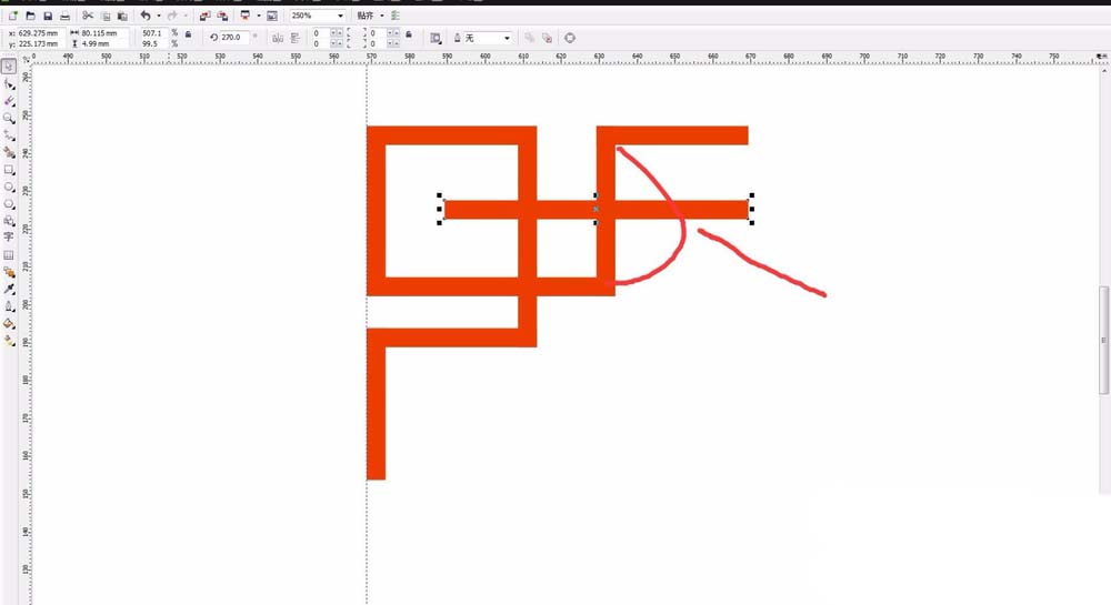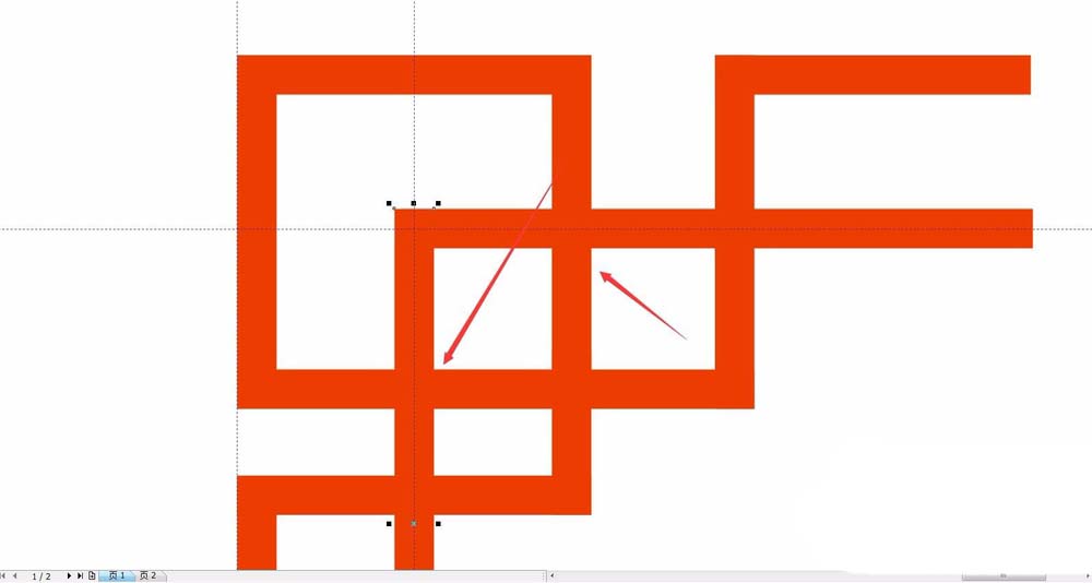 7、再添加兩條線,在正方形的中間位置。將右側和下方的線加長。然后復制一個水平翻轉。然后全部選中,垂直翻轉。調整邊線,讓他緊密結合在一起