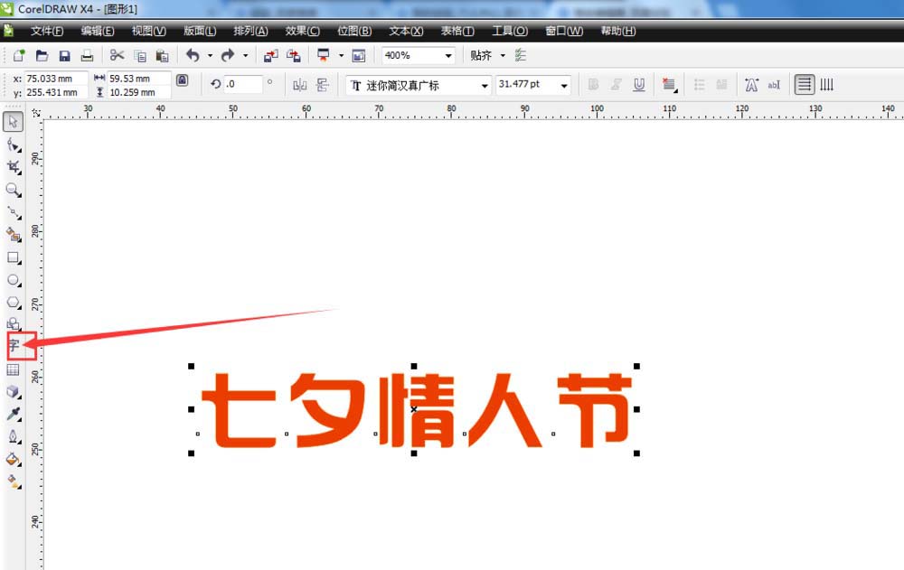 2、選中字體工具,輸入文字,調整字體,填充紅色,如圖