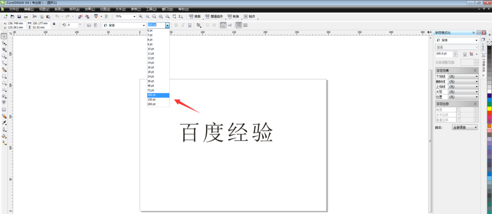 3、修改文字的大小為100pt,這個可以根據自己的需求來修改文字大小,如下圖。
