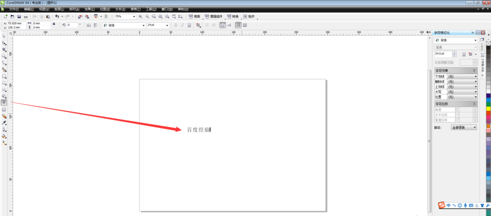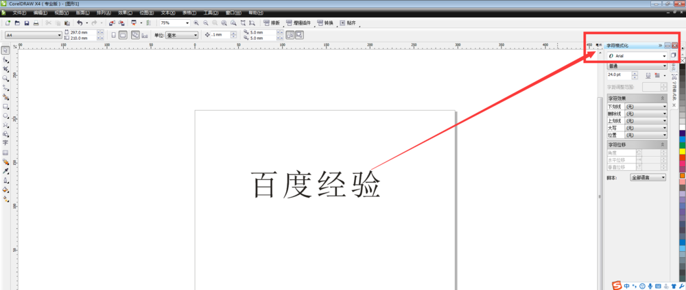 4、選中文字,單擊【字符格式化】按鈕,快捷鍵Ctrl+t,右邊就出現了字符格式化屬性。如下圖。