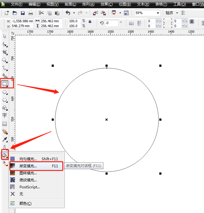 1、利用圓形工具繪制一個圓,并對其進行漸變填充。