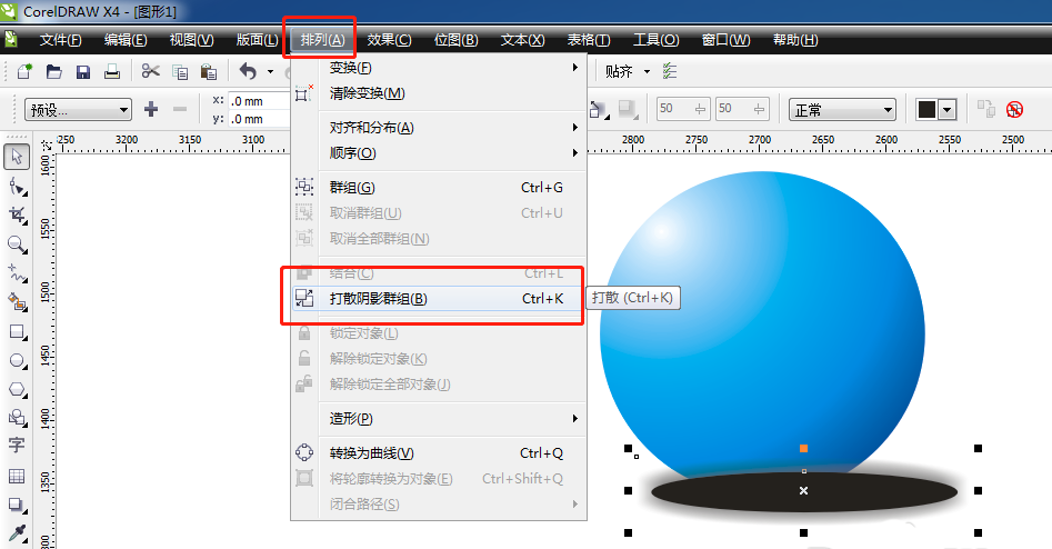 8、選擇“排列”、“打散陰影群組”。此步為了分離陰影,已供單獨使用。