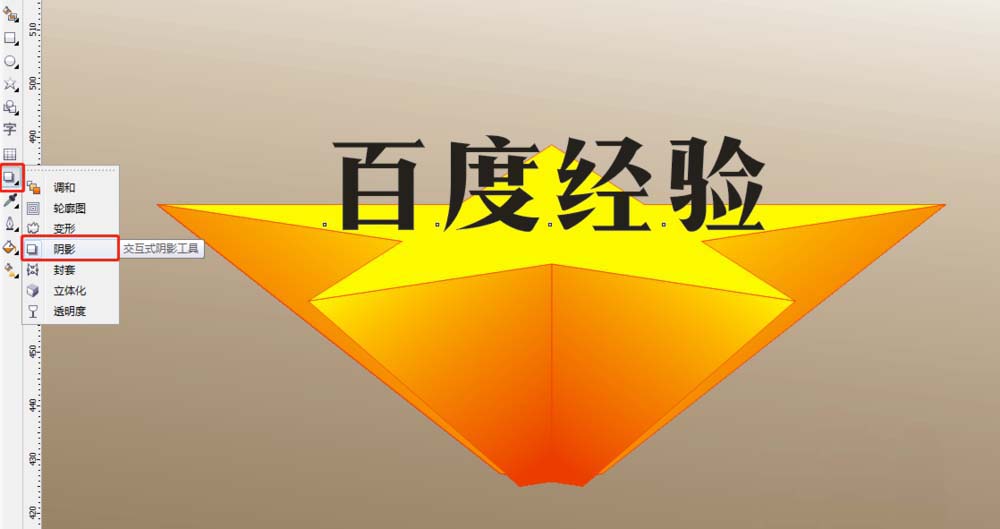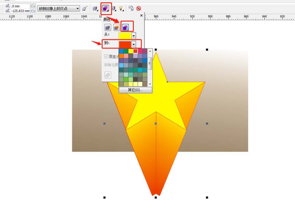 3、選擇“立體化”工具,選擇五角星中心,按住鼠標(biāo)鍵向下拖動(dòng)。