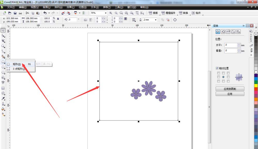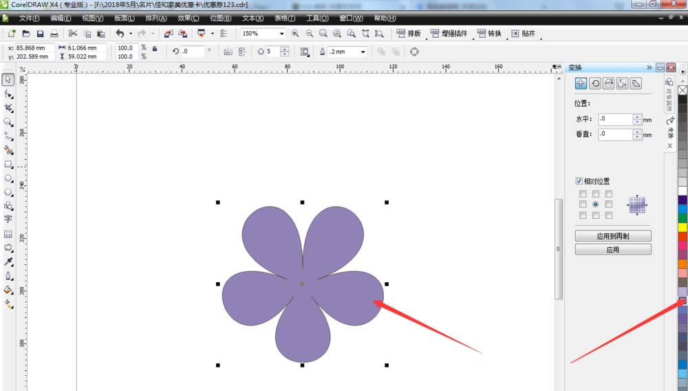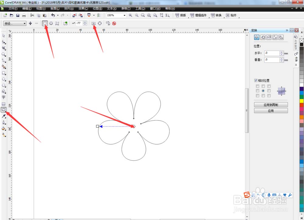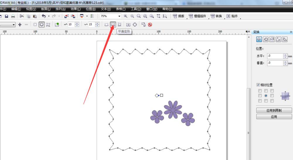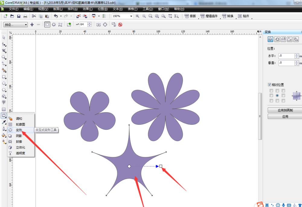5、復制一個花瓣單擊變形工具,選擇推拉變形往右拉,并填充為白色,調整好大小放在花瓣中間。