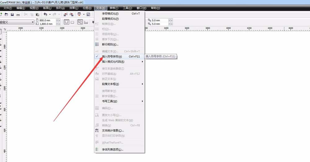 2、CDR軟件本身給我們自帶了很多的小圖標(biāo),我們是可以直接拿來使用的,而且都是矢量圖形,不會(huì)擔(dān)心有不清晰的問題。我們選擇文本菜單,下拉列表里有一個(gè)插入符號(hào)字符的選項(xiàng)。我們點(diǎn)擊一下會(huì)打開一個(gè)面板。