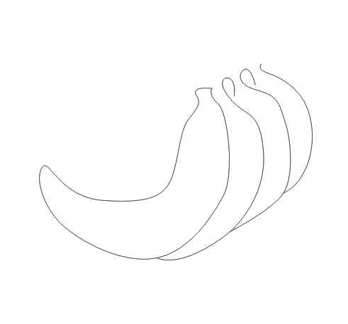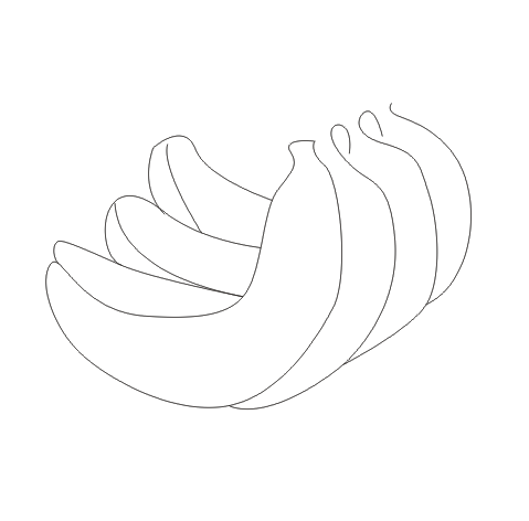 4、在這個(gè)香蕉的后面再畫出三個(gè)香蕉的上半部分,如圖所示: