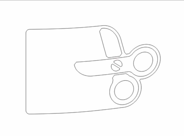 4、我們有了繪制剪刀圖標的基礎之后,我們還可以再來繪制出一個剪刀正在剪紙的圖標路徑。