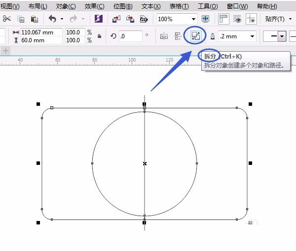 5、按空格鍵切換成“選擇工具”框選所有對象,單擊“屬性欄”中“修剪”、“拆分”。