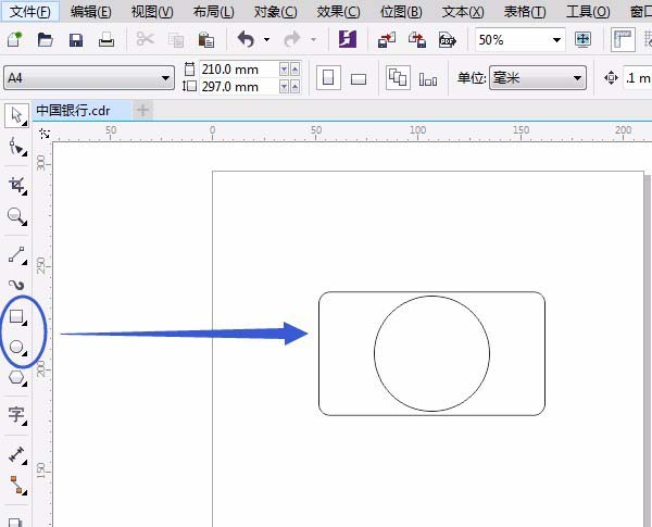 1、用“矩形工具”畫出一個矩形,用“形狀工具”變圓角,用“橢圓形工具”按Ctrl鍵畫一個正圓,如圖: