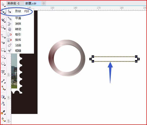 5、單擊用“矩形”工具畫矩形,再用“形狀 F10”工具調整弧度,如圖所示:
