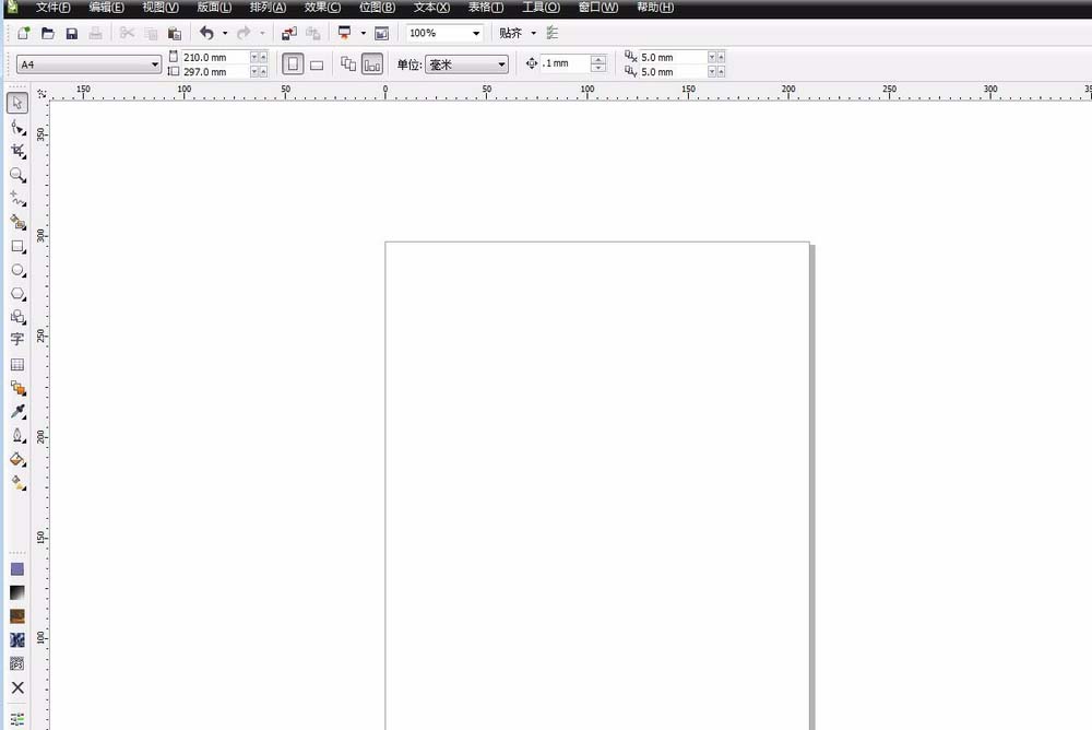 1、首先打開CDR軟件,新建一個文件。我們是為了作圖,所以可以隨便的建一個尺寸,方便我們操作。顏色模式,尺寸都可以隨便設,當然如果我們是完成作品,就一定要按要求制作了。