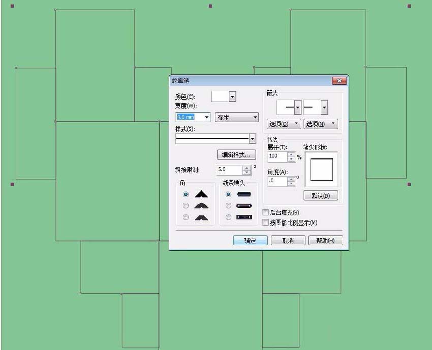 6、然后我們將矩形填充輪廓色為白色,輪廓邊加粗,我的加到4,這個根據你的尺寸而定,尺寸大的輪廓邊就需要加粗。看效果適合為宜。