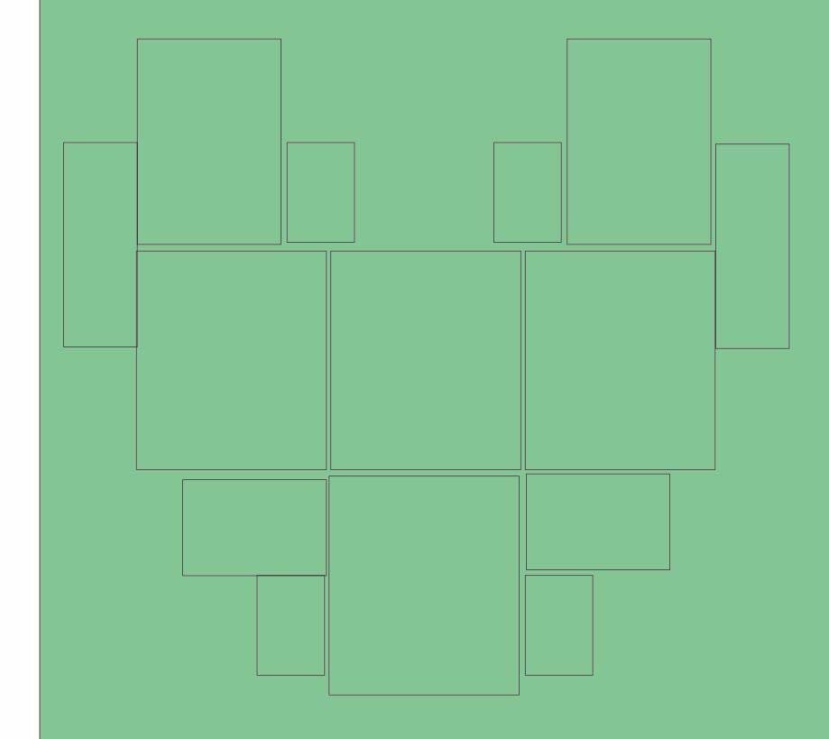 4、隨意的繪制多個矩形,讓他們大小不等,位置先不要管是不是整齊,我們可以用矩形擺放出一個類似心型的效果,這樣更加有感覺,做出整天效果比較好看。