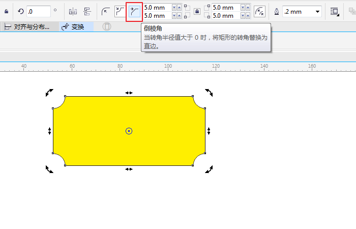 7、我們也可以把矩形的角換成倒棱角,點擊上面的"倒棱角"按鈕,如圖所示;