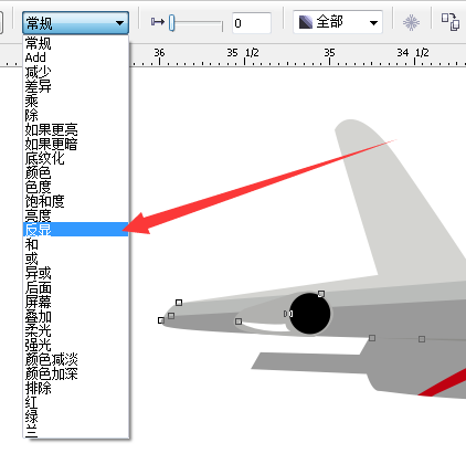 3、然后我們在工具欄中找到交互式透明度工具,并用在飛機上如圖所示
